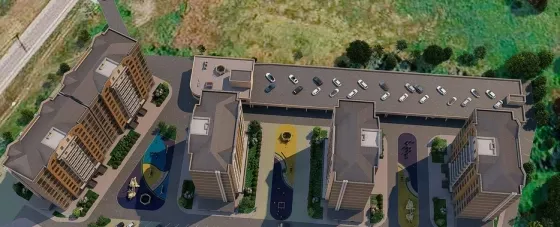 Квартал включает 5 десятиэтажных домов. На территории квартала оборудованы игровые зоны для детей разного возраста, беседки и зоны отдыха, площадки для активных игр, занятий спортом и наземная парковка.