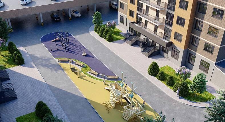 Квартал включает 5 десятиэтажных домов. На территории квартала оборудованы игровые зоны для детей разного возраста, беседки и зоны отдыха, площадки для активных игр, занятий спортом и наземная парковка.