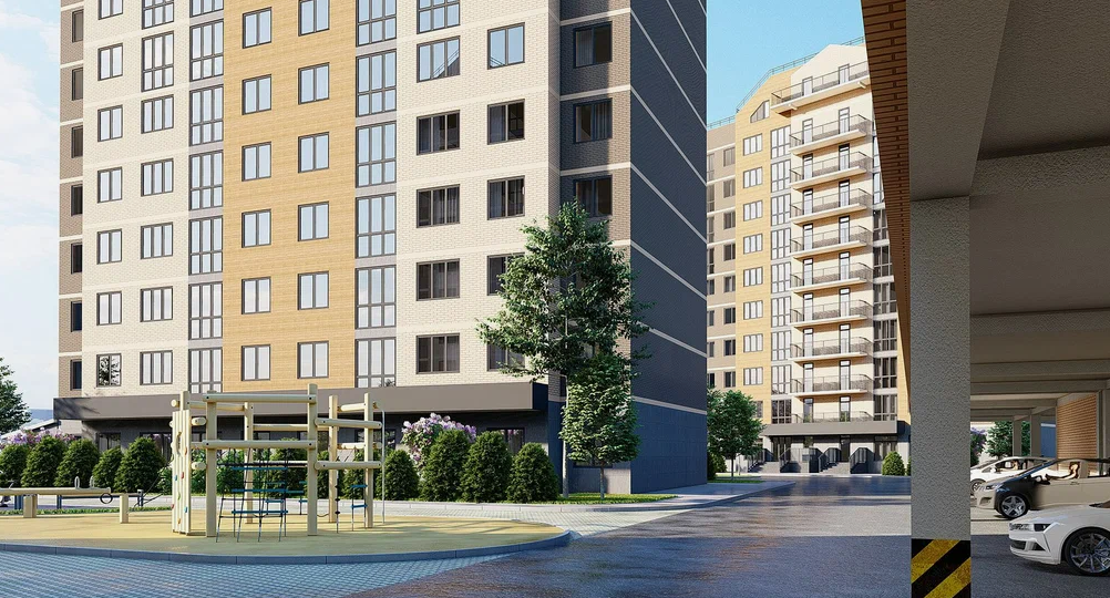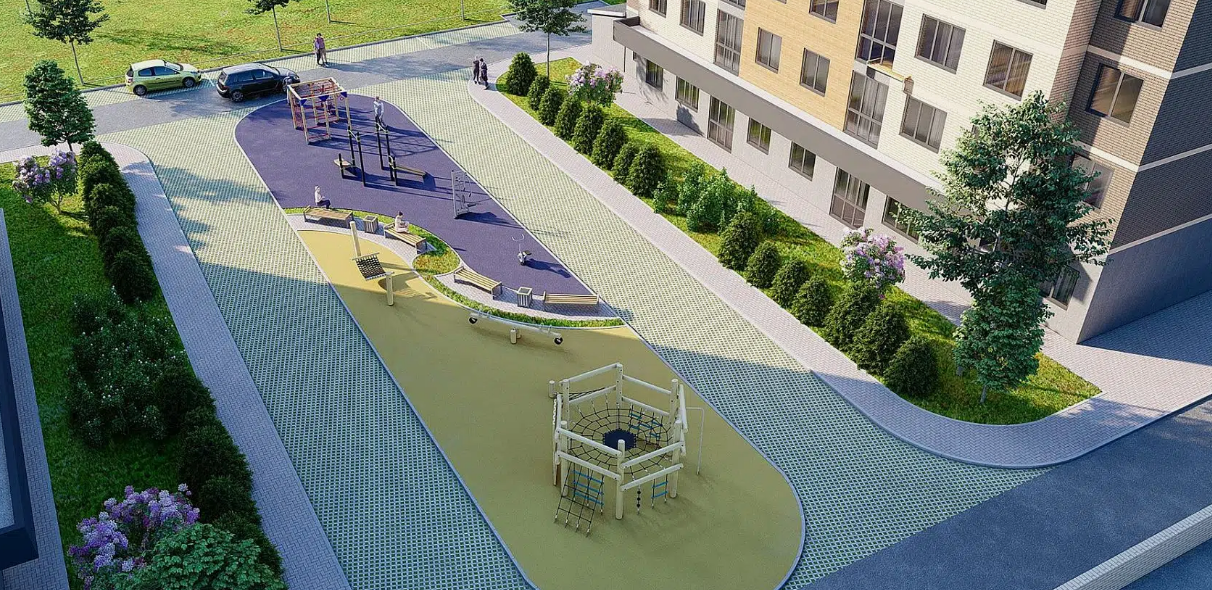 Квартал включает 5 десятиэтажных домов. На территории квартала оборудованы игровые зоны для детей разного возраста, беседки и зоны отдыха, площадки для активных игр, занятий спортом и наземная парковка.