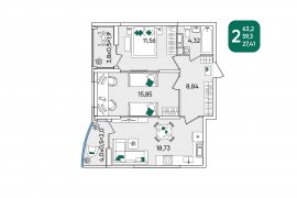 Продается 2-х комн. новостройка, 63.19 кв.м., 12/24 эт