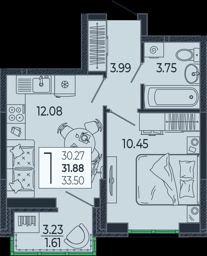 Продается однокомнатная новостройка, 33.5 кв.м., 2/21 эт