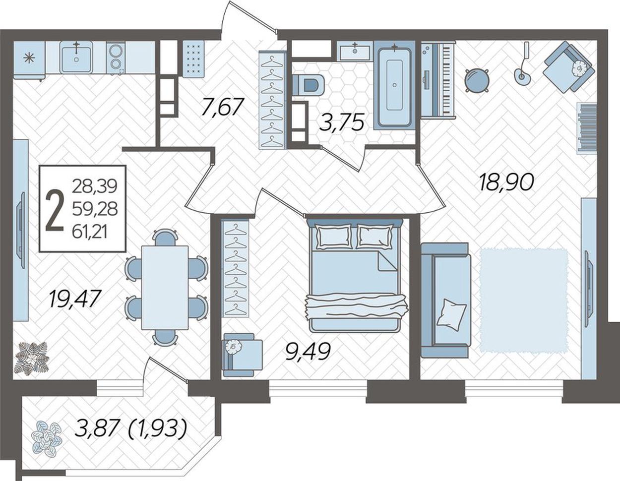 | Площадь, кв.м. | 61.21 |