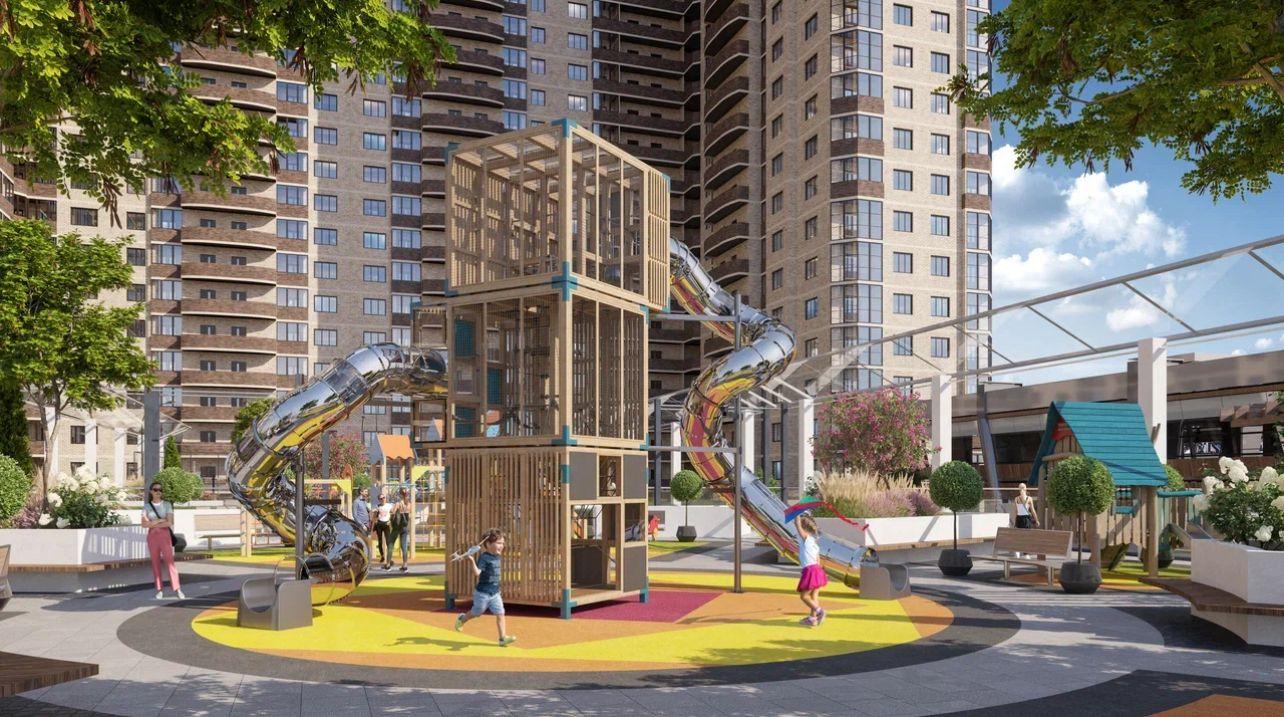 На стилобате жилого комплекса установлены детские и спортивные площадки, оборудована площадка для баскетбола, предусмотрена зона отдыха с лежаками и скамейками. На первых этажах находятся коммерческие помещения, а в одном из корпусов расположилась своя поликлиника. Для владельцев автомобилей спроектирован подземный паркинг.
