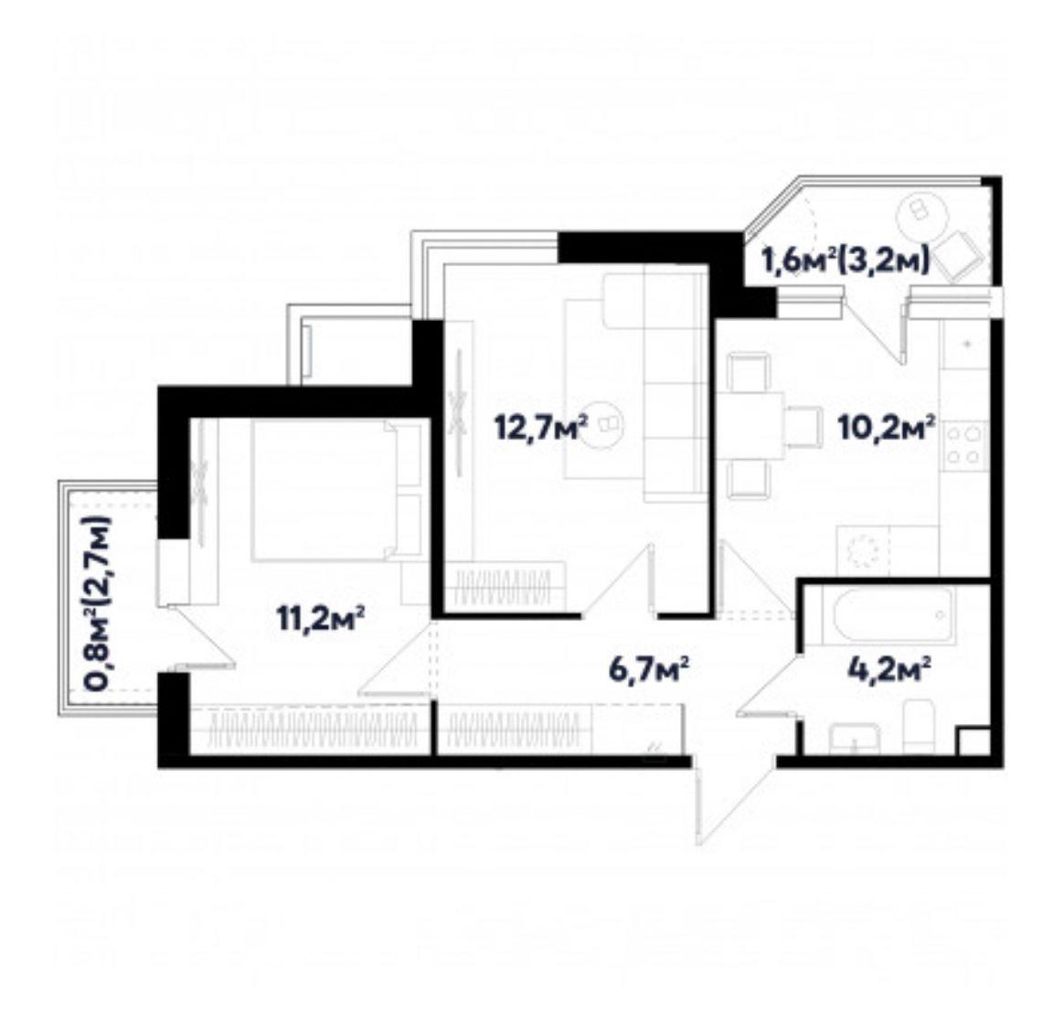 Продается 2-х комн. новостройка, 47.4 кв.м., 4/9 эт