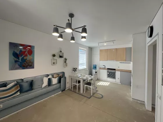 Покупателям предложены студии, однокомнатные, двухкомнатные и трехкомнатные квартиры, которые сдаются с подчистовой отделкой. Высота потолков — 2,8 м.