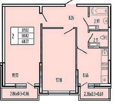 Продается 2-х комн. новостройка, 60 кв.м., 12/17 эт