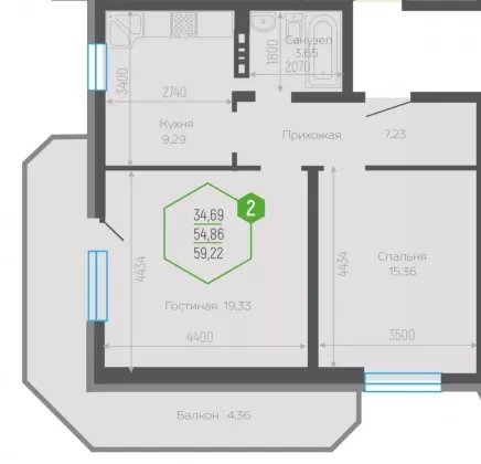Продается 2-х комн. новостройка, 59.22 кв.м., 17/19 эт