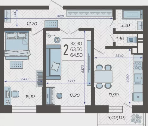 | Площадь, кв.м. | 64.5 |