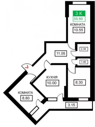 Продается 3-х комн. новостройка, 55 кв.м., 3/9 эт