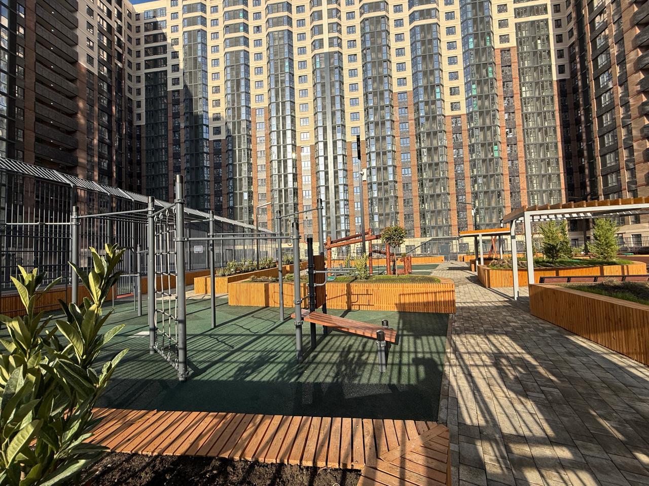 Парк «Флагманский» площадью 42 000 м2 расположен внутри микрорайона. Жилой комплекс оборудован детскими эко-городками, площадками для групповых занятий, кроссфита, воркаута, уличными тренажерами, велодорожками, памп-треками, футбольным полем, площадкой для выгула собак и