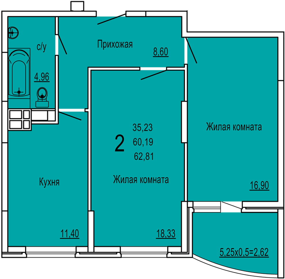 | Площадь, кв.м. | 62.81 |