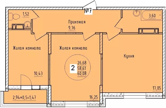 Продается 2-х комн. новостройка, 60.08 кв.м., 13/19 эт