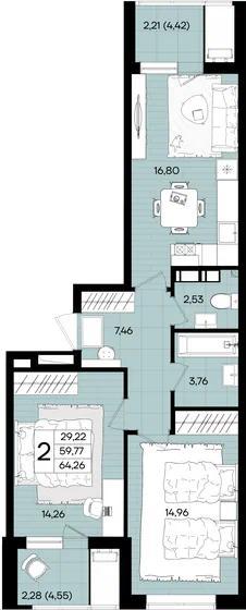Продается 2-х комн. новостройка, 64.26 кв.м., 5/18 эт