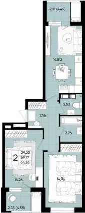 Продается 2-х комн. новостройка, 64.26 кв.м., 18/18 эт