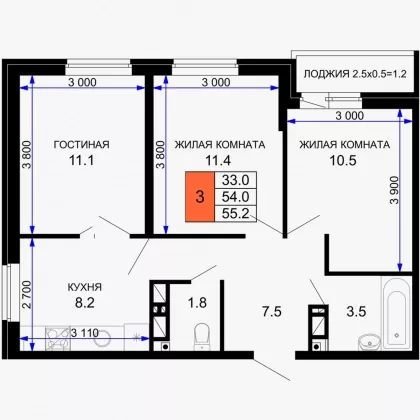 Продается 2-х комн. новостройка, 55.2 кв.м., 10/16 эт