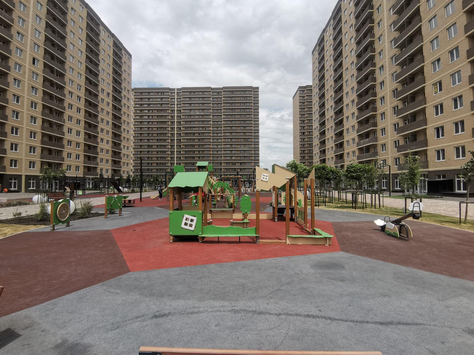 На территории микрорайона множество детских и спортивных площадок на любой вкус - от тренажеров и футбольных полей до теннисных кортов и боксерского ринга.