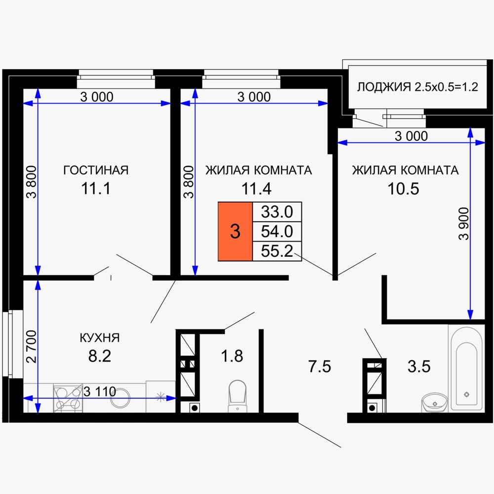 | Площадь, кв.м. | 55.2 |