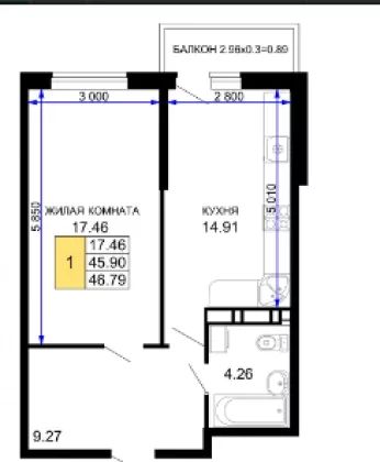 | Площадь, кв.м. | 46 |