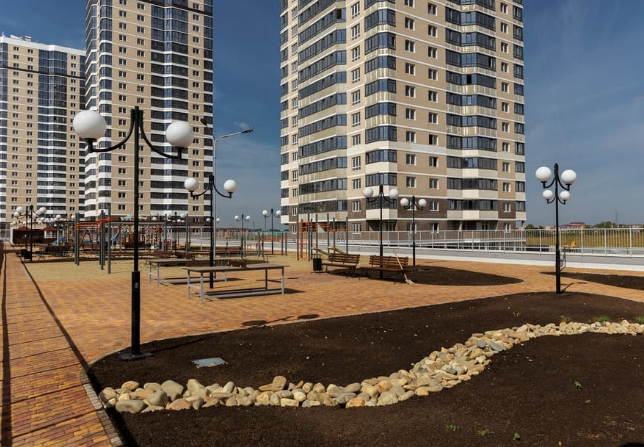Во дворе 3 детских площадки,скейтпарк,зона отдыха с лавочками,ландшафтное озеленение,зона барбекю,камеры видеонаблюдения.