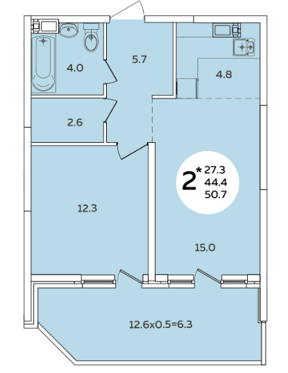 Просторная планировка,площадью 52м2.