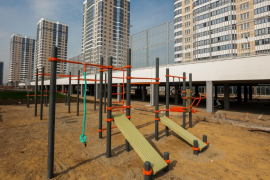 Во дворе 3 детских площадки,скейтпарк,зона отдыха с лавочками,ландшафтное озеленение,зона барбекю,камеры видеонаблюдения.