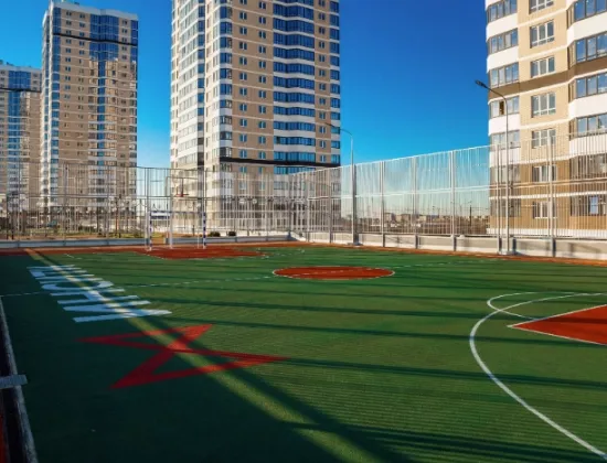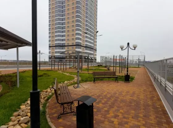 Во дворе 3 детских площадки,скейтпарк,зона отдыха с лавочками,ландшафтное озеленение,зона барбекю,камеры видеонаблюдения.