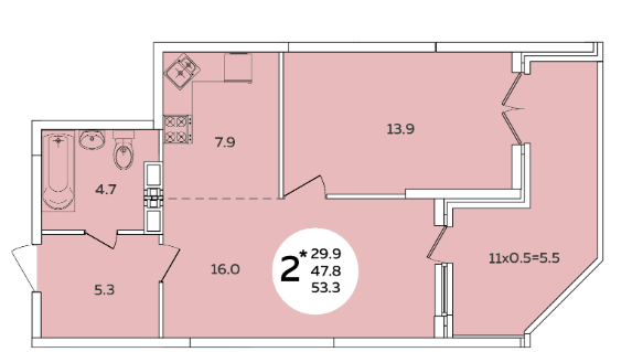 Продается 2-х комн. новостройка, 53 кв.м., 12/24 эт