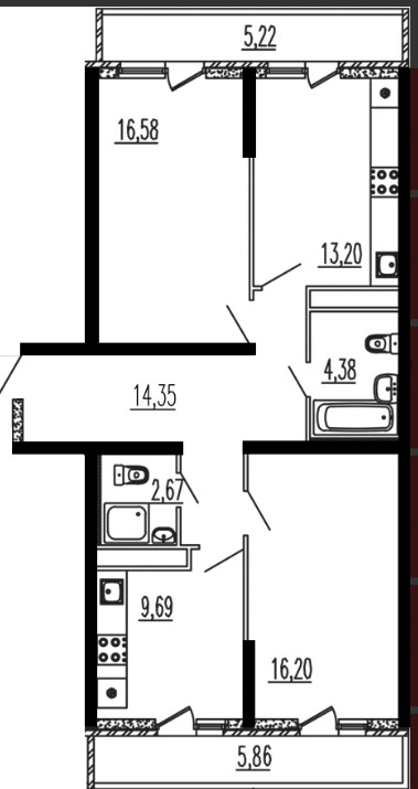 Продается 3-х комн. новостройка, 90 кв.м., 1/24 эт