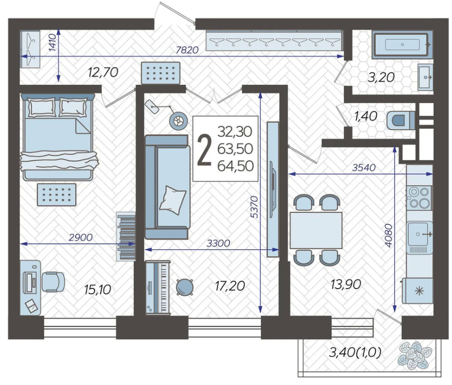 Продается 2-х комн. новостройка, 65.62 кв.м., 1/12 эт
