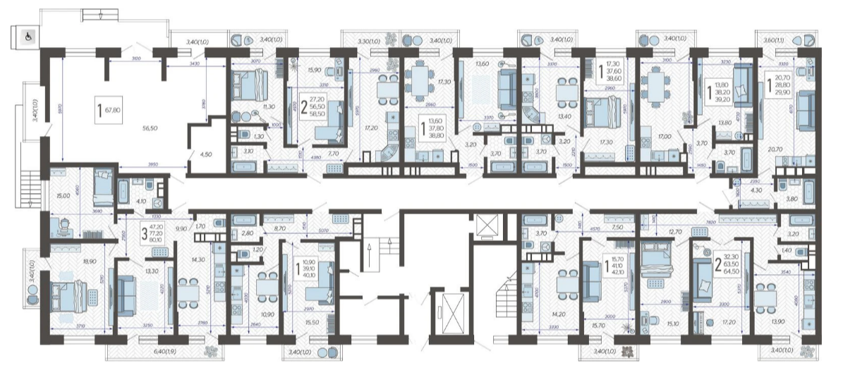 Безбарьерная входная группа, дизайнерские лифты, в каждом подъезде есть помещения, где можно оставить коляску, велосипед или самокат.