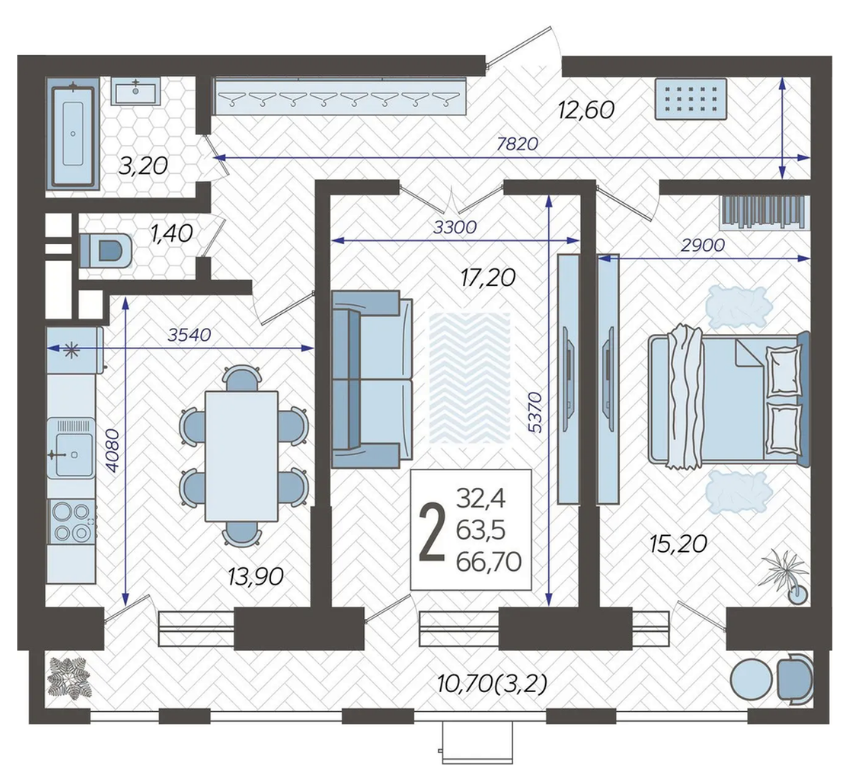 Продается 2-х комн. новостройка, 68.11 кв.м., 7/12 эт