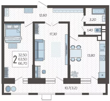 Продается 2-х комн. новостройка, 67.81 кв.м., 5/12 эт