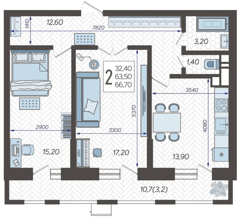 Продается 2-х комн. новостройка, 67.78 кв.м., 2/12 эт
