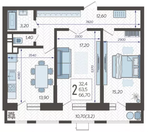 Продается 2-х комн. новостройка, 68.11 кв.м., 2/12 эт