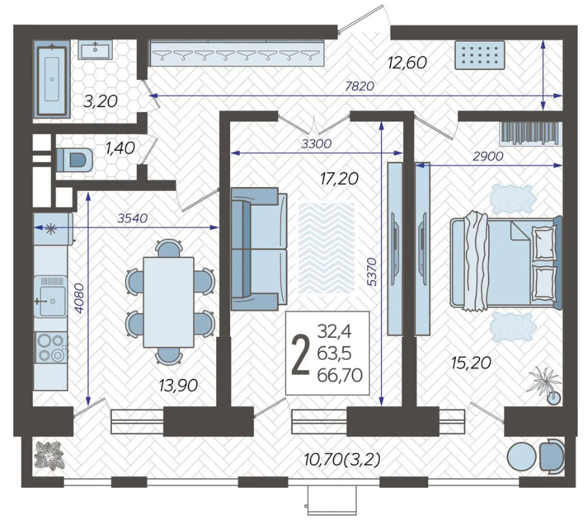 Продается 2-х комн. новостройка, 68.11 кв.м., 9/12 эт