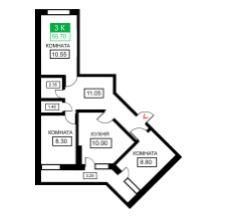 Продается 3-х комн. новостройка, 55 кв.м., 3/9 эт