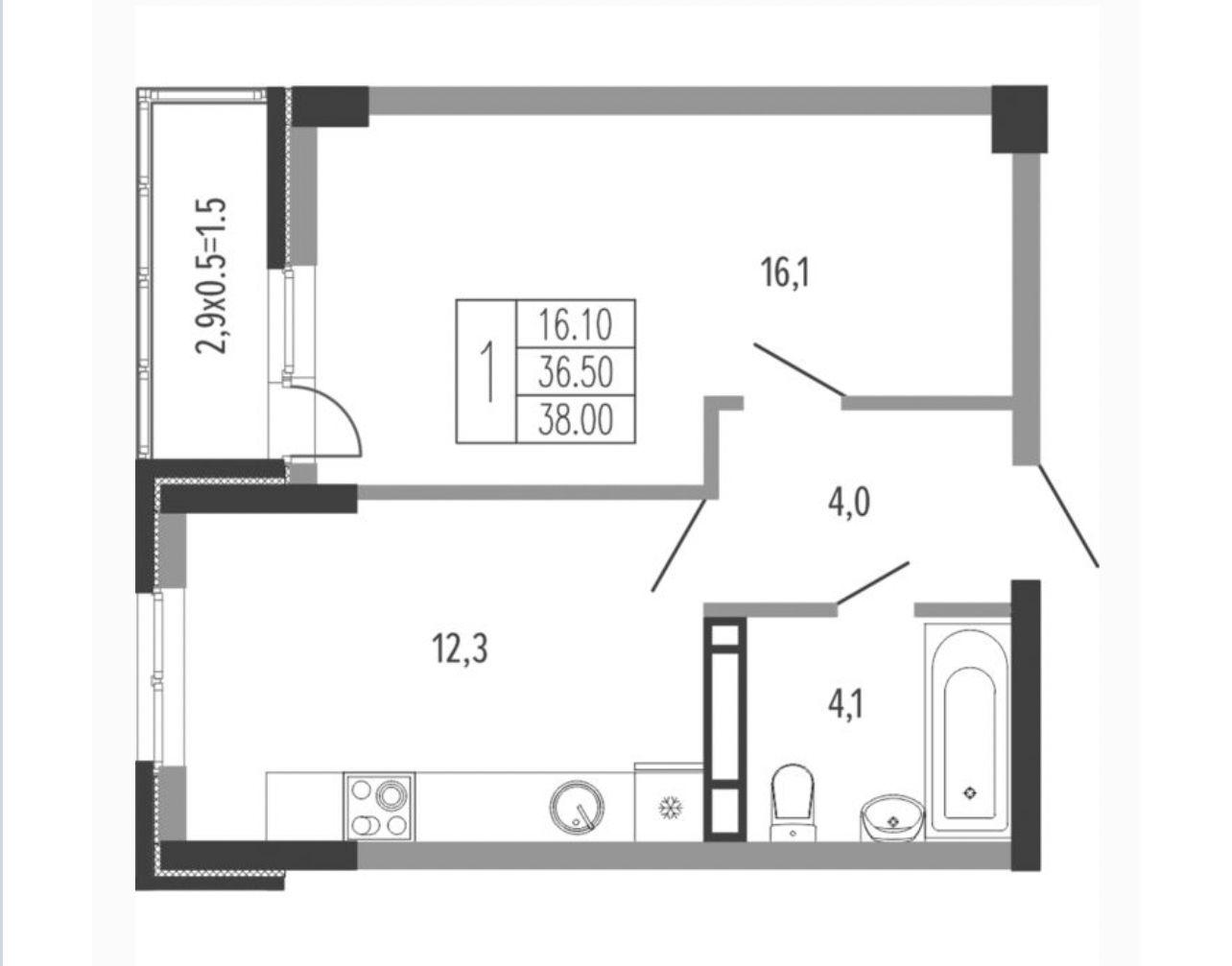 | Жилая площадь | 16.1 |