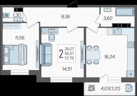 Продается 2-х комн. новостройка, 57.78 кв.м., 10/19 эт