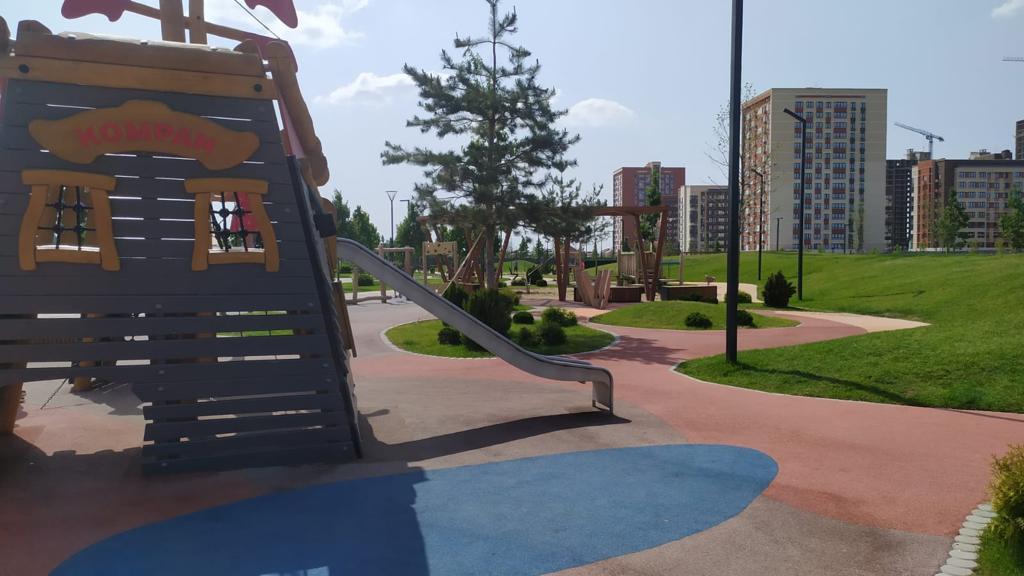 —На территории района расположены школа на 1550 мест, 3 детских сада на 800 мест, поликлиника и частные клиники. На первых этажах домов расположены коммерческие помещения. Дворы свободны от автомобилей. Для автовладельцев предусмотрено более 2000 мест на открытых парковках по периметру микрорайона, и многоуровневые крытые наземные паркинги. Большая часть микрорайона оборудована пешеходными зонами и благоустроенными придомовыми территориями со спортивными площадками и большими детскими игровыми пространствами. Вся инфраструктура района находится в пешей доступности и располагается внутри микрорайона.