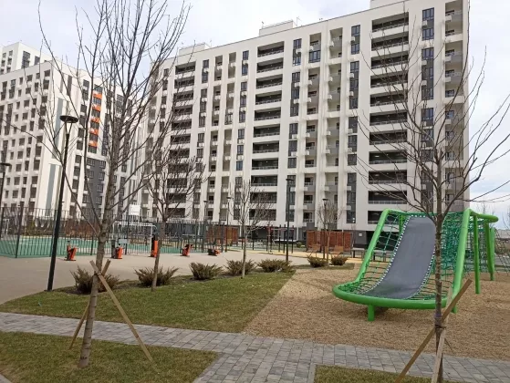 Благоустройство придомовой территории выполнено в формате "инста-двор" с ландшафтным дизайном, экологичными детскими площадками, спортивными площадками, зонами отдыха для взрослых. На первом этаже входной группы будут располагаться просторные холлы с зоной отдыха, колясочные-велосипедные, вход в которые будет осуществляться по магнитному ключу. Также на первом этаже есть уборная, благодаря которой жильцы могут не подниматься на жилой этаж. В домах установлены скоростные, бесшумные лифты, пассажирский и грузопассажирский.