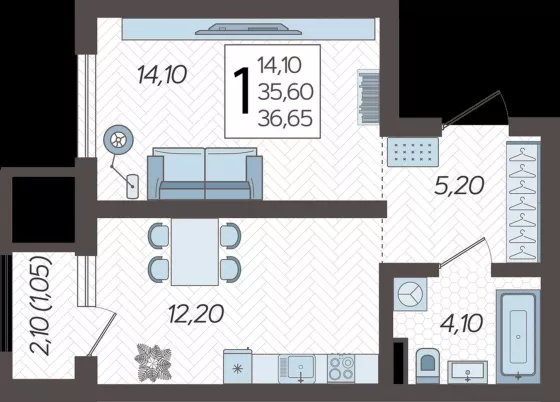 Продается однокомнатная новостройка, 36.65 кв.м., 3/12 эт