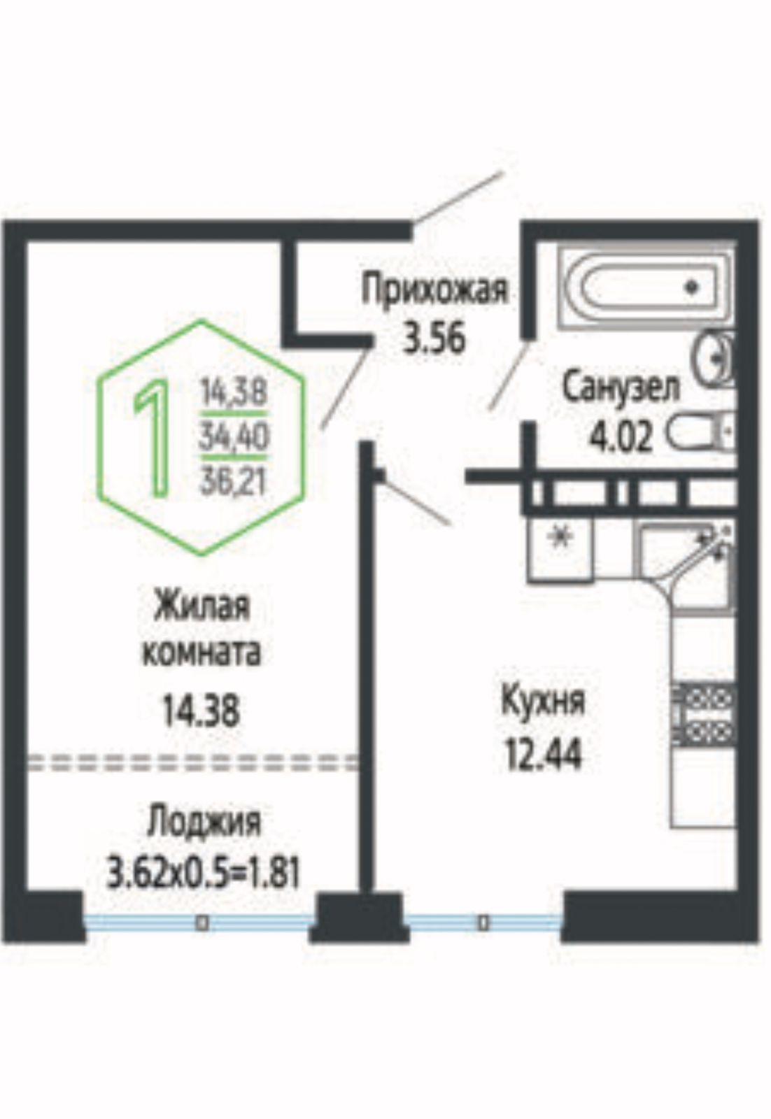 | Площадь кухни, кв.м. | 12.41 |