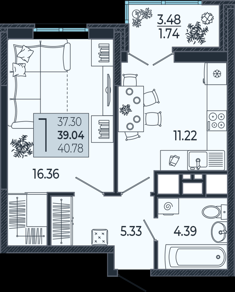 | Площадь, кв.м. | 40.7 |