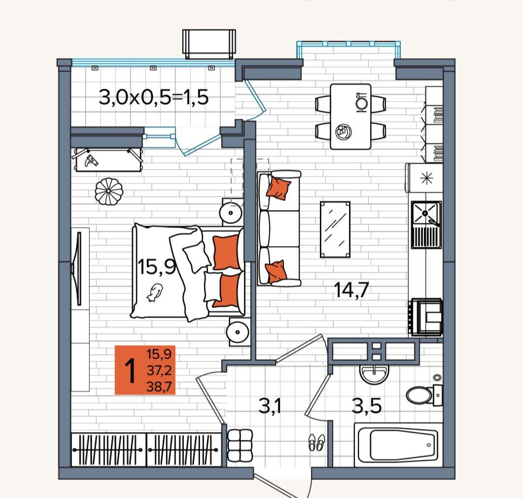 | Площадь, кв.м. | 38.7 |