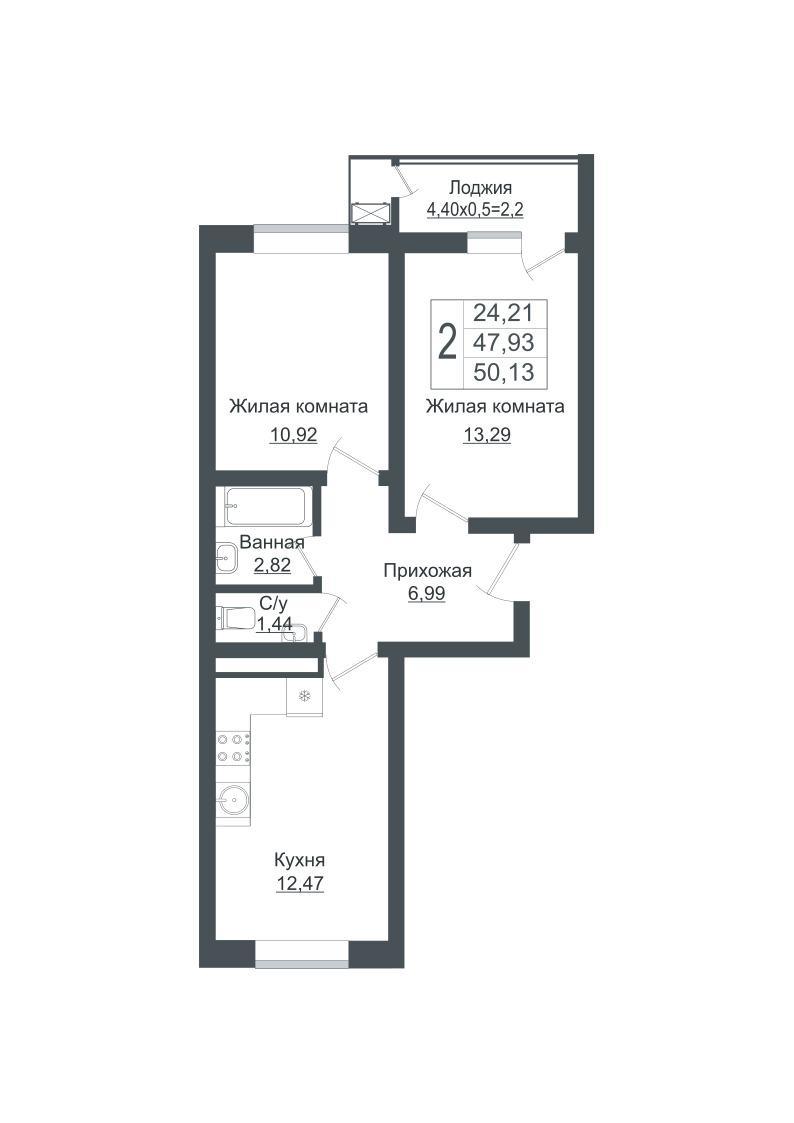 Продается 2-х комн. новостройка, 50.13 кв.м., 9/16 эт