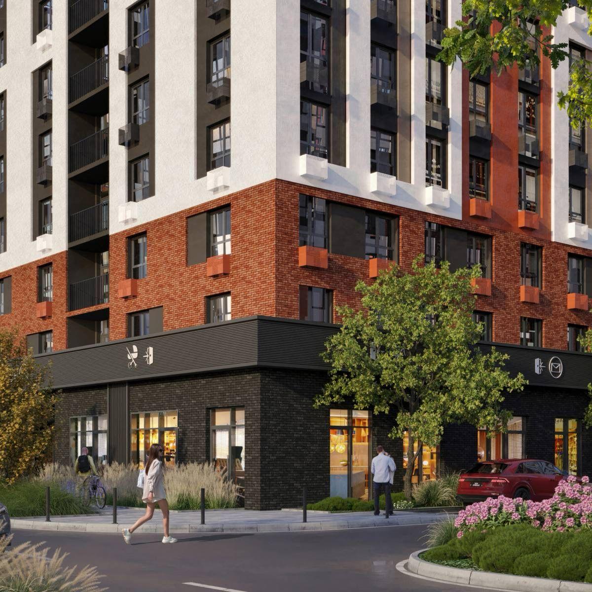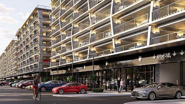 —Многоуровневый паркинг с коммерцией на 1 этаже;
