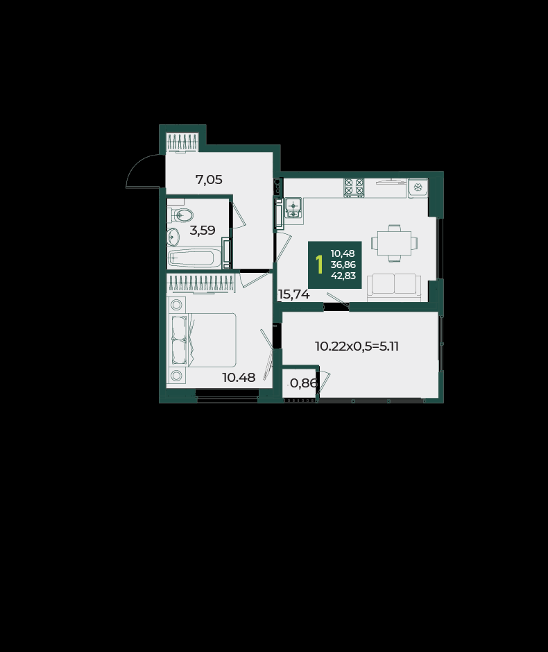 | Жилая площадь | 10.48 |