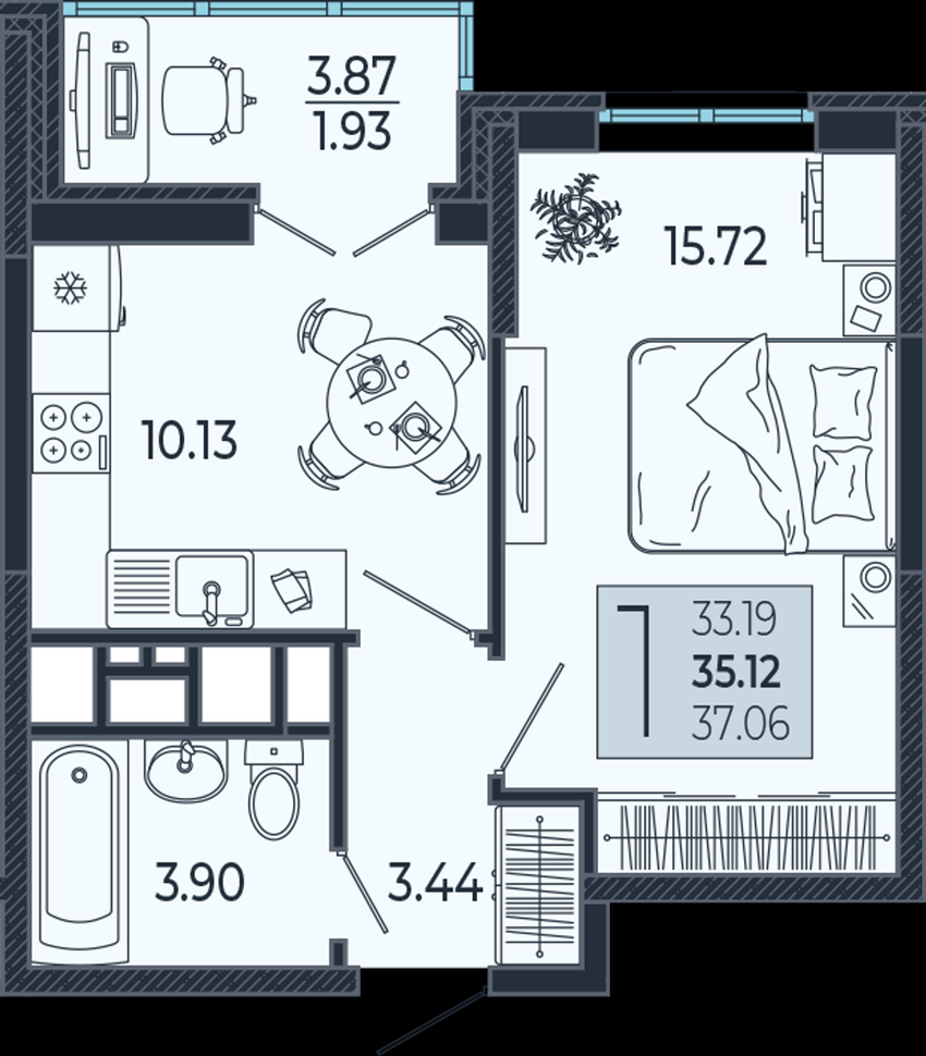 Продается однокомнатная новостройка, 37.6 кв.м., 12/21 эт