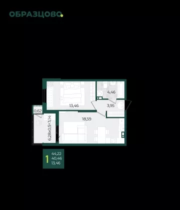 Продается однокомнатная новостройка, 44.22 кв.м., 14/21 эт