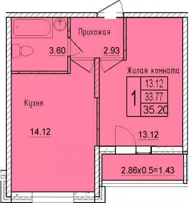 Продается однокомнатная новостройка, 35.2 кв.м., 17/19 эт